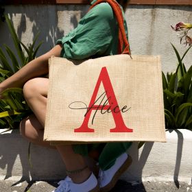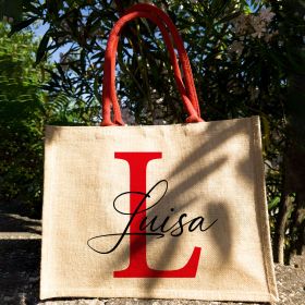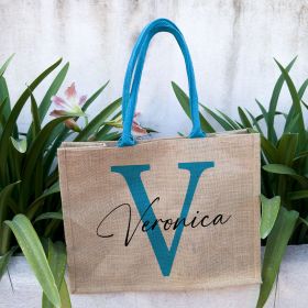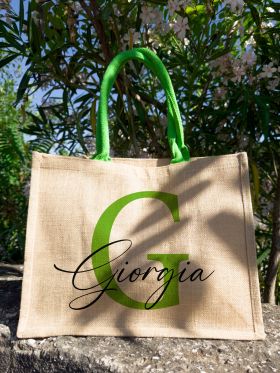 Borsa mare in juta fiori tropicali personalizzata con nome