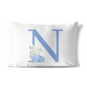 Federa cuscino stampa floreale azzurro con iniziali lettere alfabeto dalla M alla Z