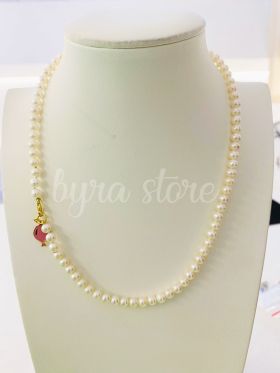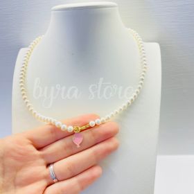 Materiale Perle di Fiume bianche tondeggianti da 5 - 5.5 mm. con ciondolo palloncino colore rosa smaltato