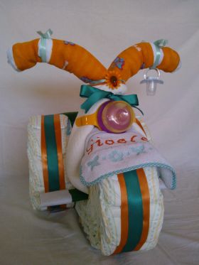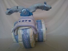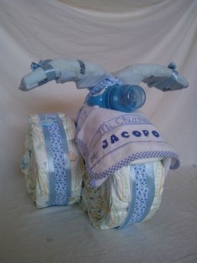 Il Triciclo di pannolini è un pensiero di grande effetto ed eleganza,composta da un simpatico abbigliamento e accessori per il bebè sopratutto quando vorresti regala piu' cose ma non sai come presentarle ebbene il Triciclo ha tutto quello che puo' servire per la nascita del neonato.