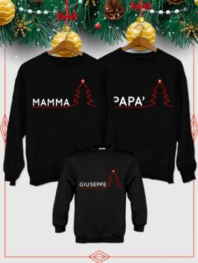 Tris di felpe natalizie adulto e bambino per la famiglia personalizzati Albero di natale