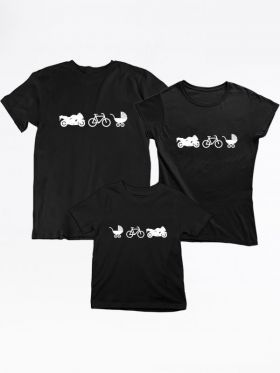 Tris di t-shirt per la famiglia personalizzato Moto Bici Carrozzina bebè