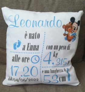Cuscino personalizzabile con i dati del Bebè un bellissimo e dolcissimo ricordo del momento piu' bello