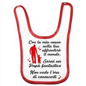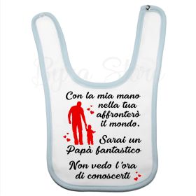 Bavaglino bavetto personalizzato Con la tua mano nella mia affronterò il mondo Sarai un papà fantastico Non vedo l'ora di conoscerti