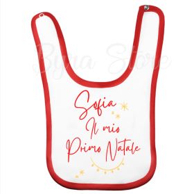 Bavaglino Natalizio bimbo bimba personalizzabile con nome Il mio primo Natale con stelline