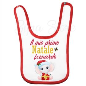 Bavaglino Natalizio personalizzato con nome Il mio primo natale Elefantino baby