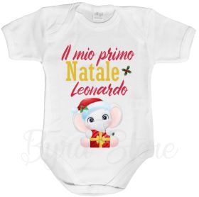 Body Bodino Natalizio neonato personalizzato con nome Il mio primo Natale Elefantino baby