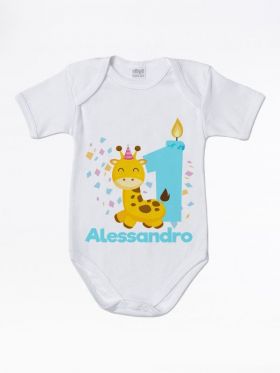 Body Bodino Neonato personalizzato Compleanno a tema Giraffa con palloncini