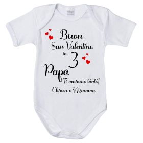 Body Bodino Neonato personalizzato con nome Buon San Valentino in 3 Papà - Mamma