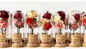 Bomboniere composta da ben 3 rose quindi la nostra Triade di Rosa eterna in cupola di vetro per tutte le occasioni ideali come Bomboniere o Segnaposti