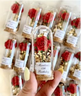 Bomboniere rosa eterna in cupola di vetro per tutte le occasioni ideali come Bomboniere o Segnaposti