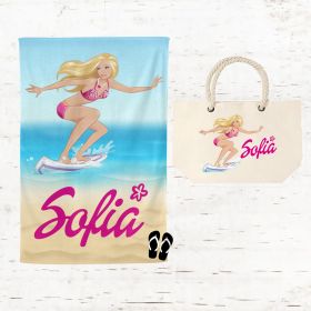 Borsa mare in cotone canvas personalizzata con nome Barbie surf
