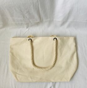 Manici in fettuccia di cotone; può essere portata a mano o a spalla