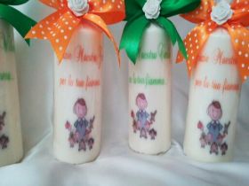 La Candela è personalizzabile con qualsiasi grafica, adatte per ogni occasione con confezione in cellophane trasparente complete con confetti vari gusti + bigliettino + tulle + nastro.
