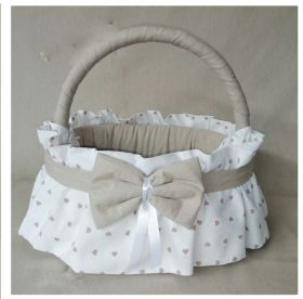 Graziosamente rivestito in stoffa rappresenta un porta oggetti, elegante e funzionale, da tenere e conservare nella cameretta del bimbo.