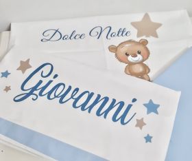 I sogni del tuo piccolo saranno unici con il completo lenzuolino personalizzato con il suo nome.