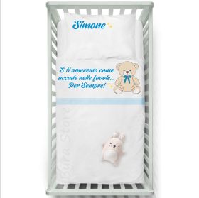 I sogni del tuo piccolo saranno unici con il completo lenzuolino personalizzato con il suo nome.