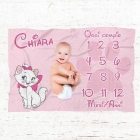 Coperta calendario complimese neonato personalizzata con nome Gattina minou