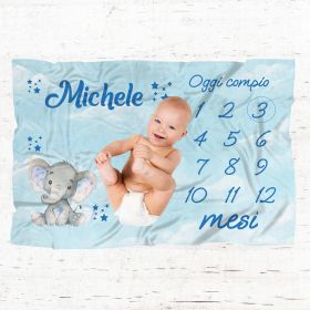 Coperta calendario complimese neonato personalizzata con nome Elefantino