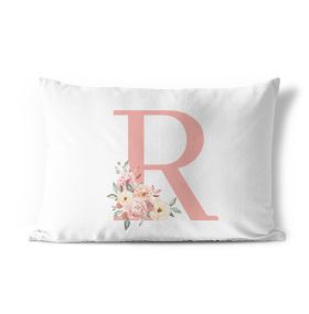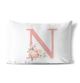 Federa cuscino stampa floreale rosa con iniziali lettere alfabeto dalla M alla Z