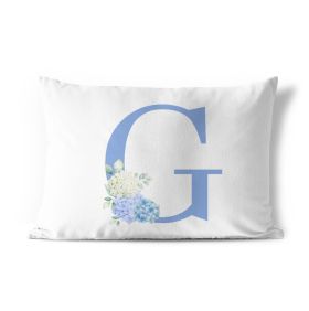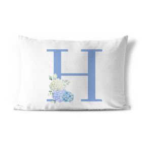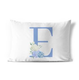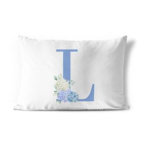 Federa cuscino stampa floreale azzurro con iniziali lettere alfabeto dalla A alla L