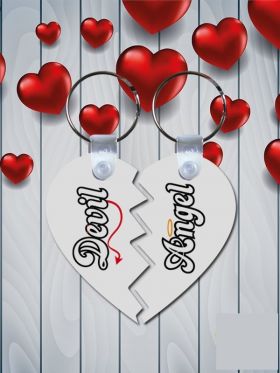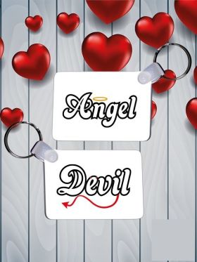 Coppia di portachiavi in alluminio personalizzabili con nome-Angel e Devil