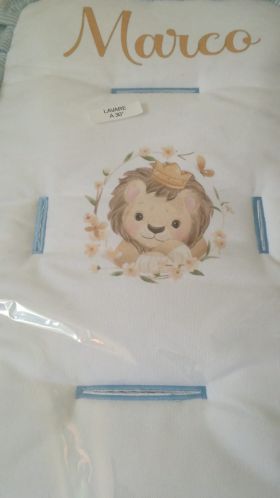 Copri passeggino personalizzato con nome e personaggio Leoncino