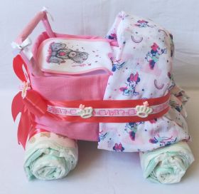 La Baby Carrozzina è un pensiero di grande effetto ed eleganza,composta da un simpatico abbigliamento e accessori per il bebè sopratutto quando vorresti regalare piu' cose ma non sai come presentarle ebbene la Baby carrozzina ha tutto quello che puo' servire per la nascita del neonato.