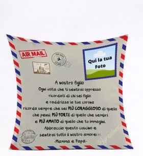 Cuscino quadrato con dedica postale da Mamma e Papa'