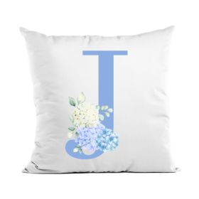 Cuscino stampa floreale azzurro con iniziali lettere alfabeto dalla A alla J