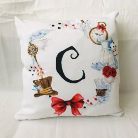 Cuscino cornice Alice nel paese delle maraviglie e iniziale lettera alfabeto