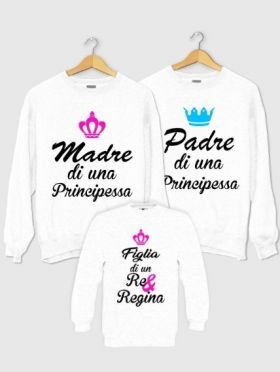 tris di felpe adulto e bambino per la famiglia personalizzati king queen