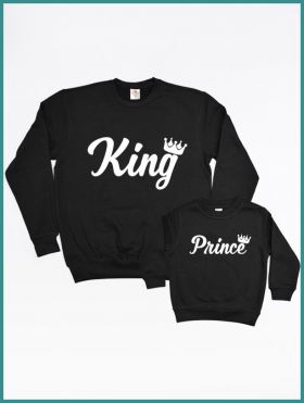 Coppia Felpe Uomo-bambino personalizzabili con nome The King The Prince-The Princess