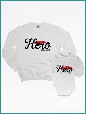 Coppia Felpa Uomo-Lupetto neonato personalizzata con anno Hero Little Hero