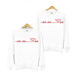 Coppia di felpe girocollo personalizzata tennis racchette con battito del cuore