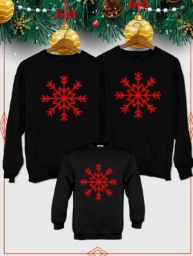 Tris di felpe adulto e bambino per la famiglia personalizzati fiocco di neve