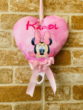 Carillon per neonati e bambini da 0+ mesi a forma di cuore con stampa personalizzata con qualsiasi personaggio e nome. Quando il carillon viene caricato, la dolce melodia ad un volume piacevole permette al bambino di viaggiare facilmente nella terra dei sogni .Grazie ai due nastri, il carillon può essere facilmente appeso alla culla, alla carrozzina o al seggiolino auto del bambino ed è un simpatico richiamo visivo, sia a casa che in viaggio