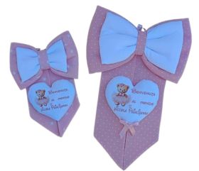 Il fiocco nascita è interamente realizzato con tessuti di puro cotone con morbide imbottiture di ovattina ed i disegni e le frasi sono realizzati a ricamo.