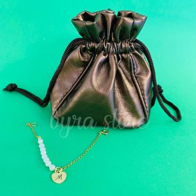 Materiale Argento italiano 925 bagnato in oro con Perle di Fiume bianche tondeggianti da 5 - 5.5 mm. con ciondolo e incisione laser ed inchostro lettera su richiesta