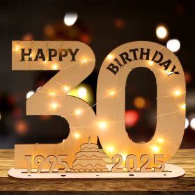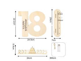 Numero compleanno in legno luci decorative a LED e sulla base fori per inserimento candeline per 18° 30° 40° 50°