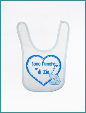 Bavetto bavaglino neonato personalizzato Sono l'amore di Zia - dello Zio con elefantino
