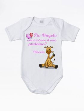 Body Bodino Neonato personalizzato con nome e giraffa Zio vuoi essere il mio Padrino?