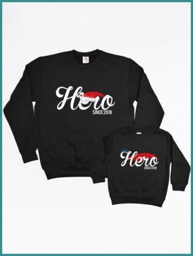 Coppia Felpe Uomo-bambino personalizzata con anno Hero Little hero