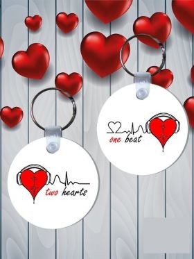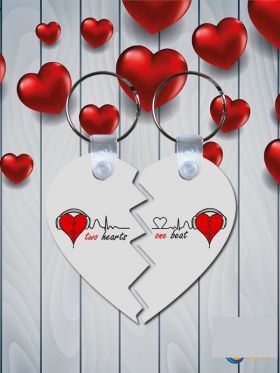 Coppia di portachiavi in alluminio personalizzato Two hearts one beat