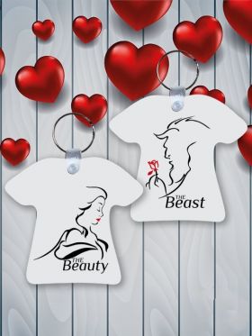 Coppia di portachiavi in alluminio personalizzato la Bella e la Bestia