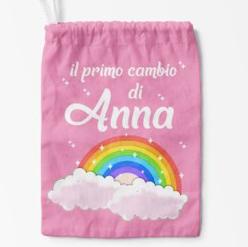 Sacco nascita primo cambio personalizzato con nome e arcobaleno