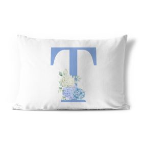 Federa cuscino stampa floreale azzurro con iniziali lettere alfabeto dalla M alla Z
