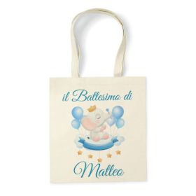 Shopper in cotone personalizzato con nome Il Battesimo di con elefantino