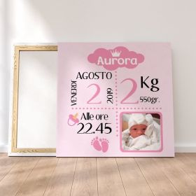 Quadretto tela nascita personalizzato con foto e nome