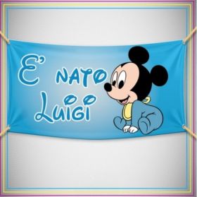 Striscione nascita baby personalizzato Benvenuto con topolino e topolina baby